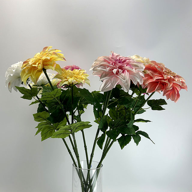 The sturdy, flexible stems allow for easy cutting and shaping to fit any vase, arrangement, or floral foam, while the realistic veined green leaves enhance the authentic, garden-fresh appearance. Crafted from high-grade, fade-resistant materials, this artificial dahlia bouquet is long-lasting, pet-safe, and requires no watering, pruning, or upkeep, offering a hassle-free way to enjoy lasting floral beauty.