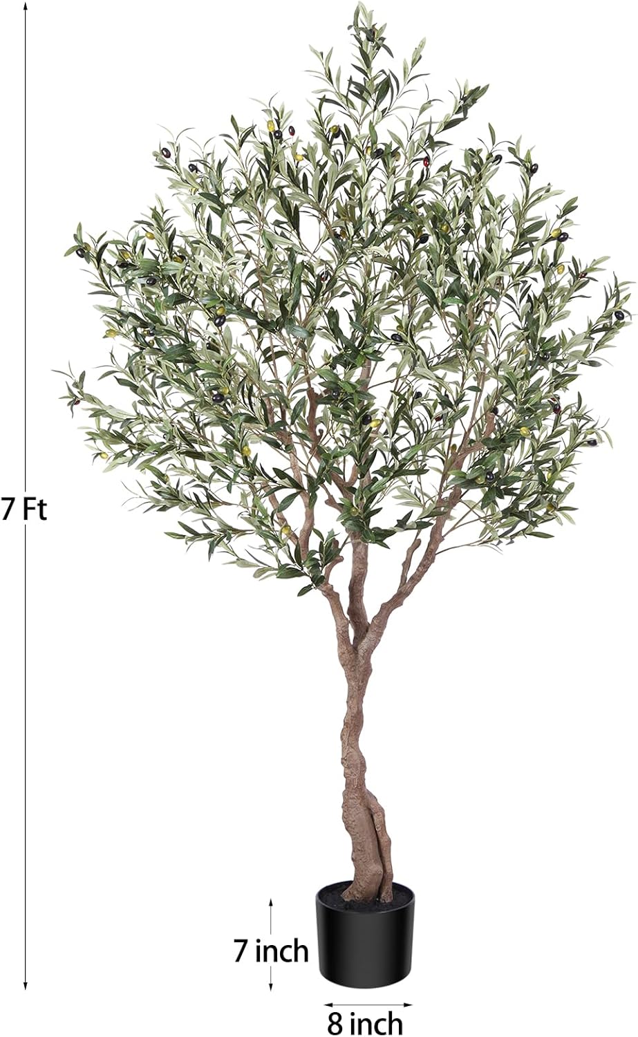 Professional Design: Every detail of the 7 ft artificial olive tree has been professionally designed and crafted to mimic a natural olive tree. The tree trunks have a real tree texture structure design, paired with slender leaves and lifelike fruits